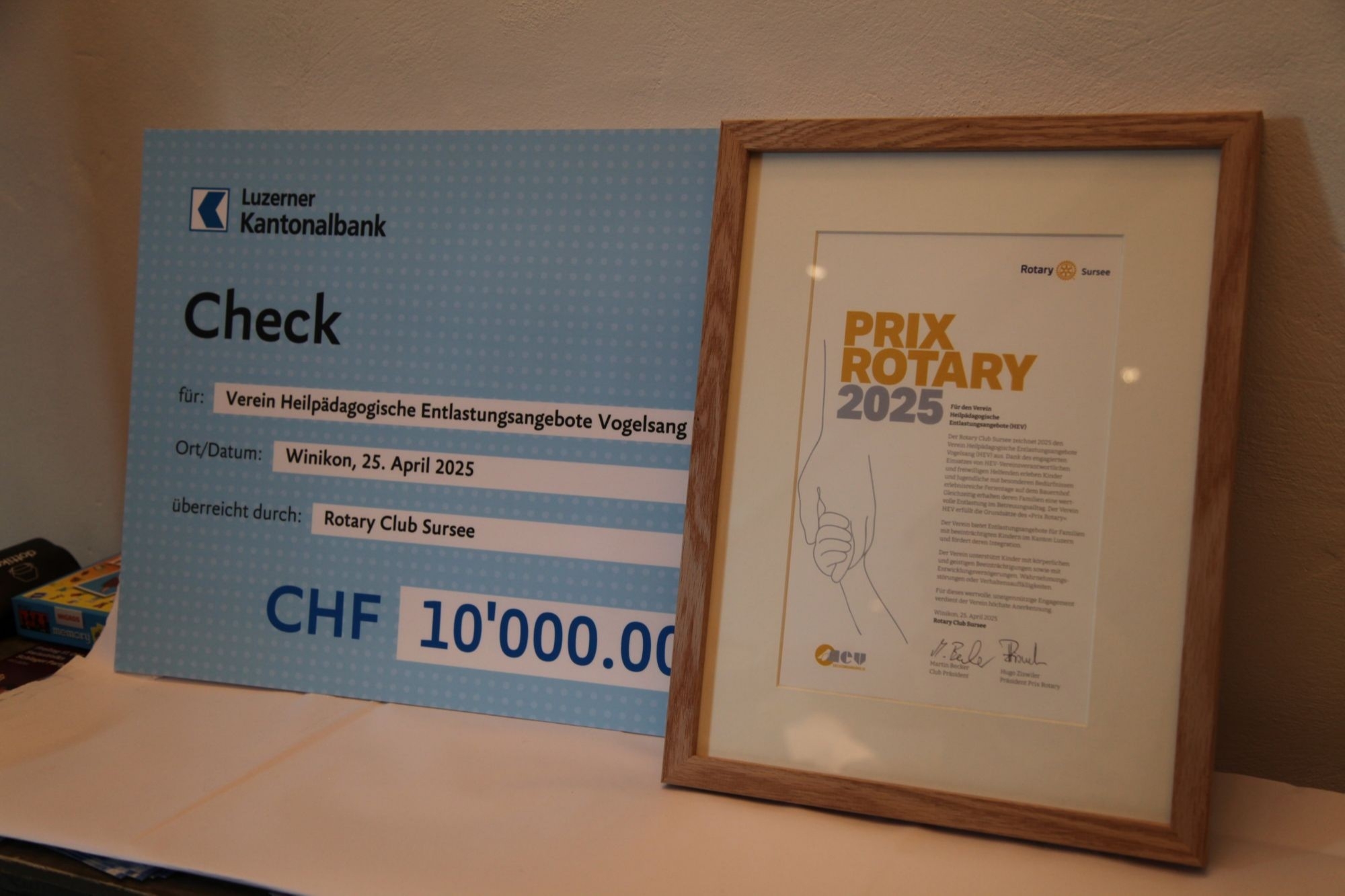 Am 25. April 2025 verlieh der Rotary Club Sursee den «Prix Rotary» an den Verein Heilpädagogische Entlastungsangebote Vogelsang (HEV). Dieser Preis wird alle zwei Jahre an Personen oder Organisationen vergeben, die sich in der Region Sursee durch ihr selbstloses Engagement im Sinne der Ideale von Rotary besonders hervortun. Die Auszeichnung ist mit CHF 10'000 dotiert.